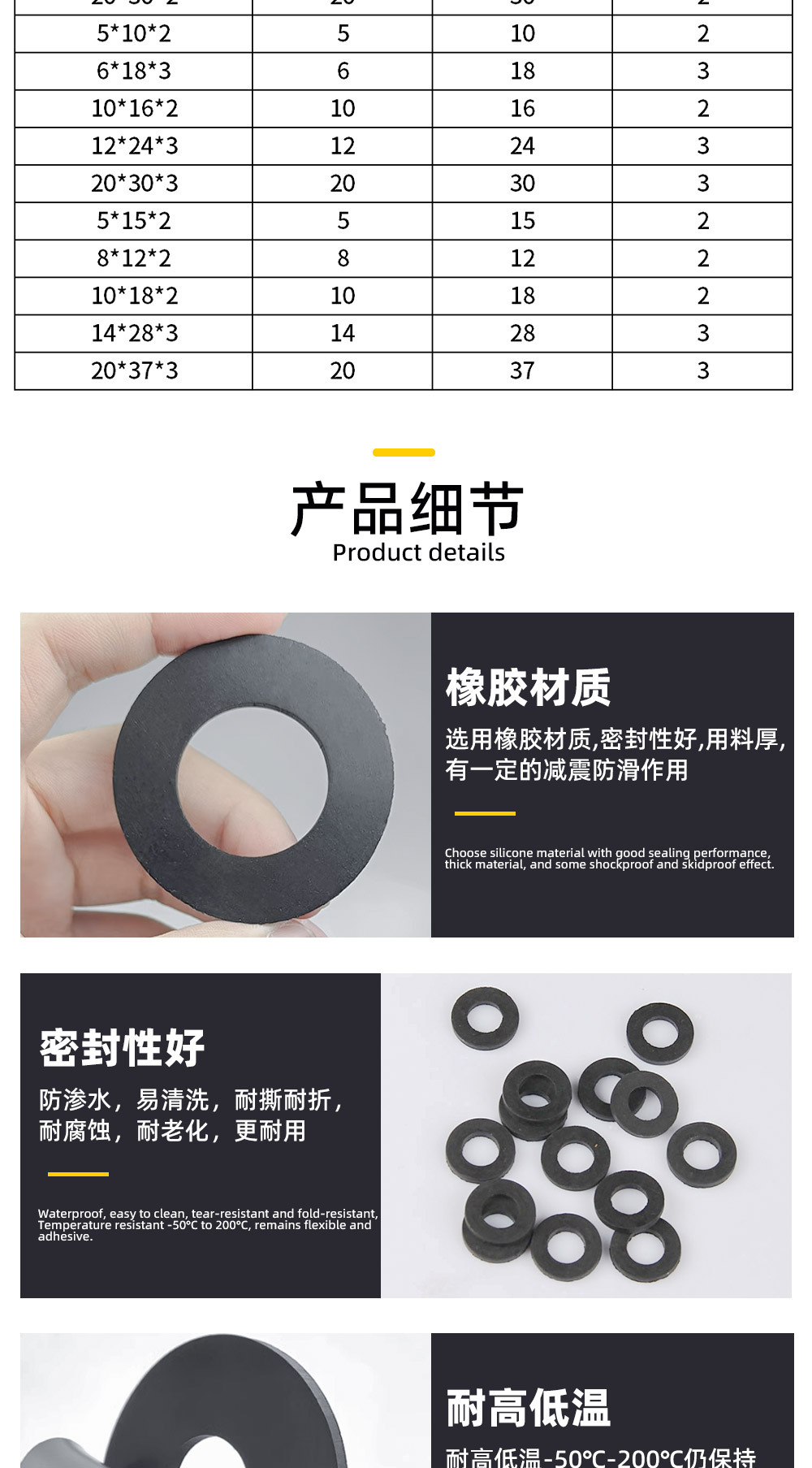 产品品牌白色硅胶垫片螺丝专用减震防水垫圈耐高温密封件黑色 橡胶M2M3-M2