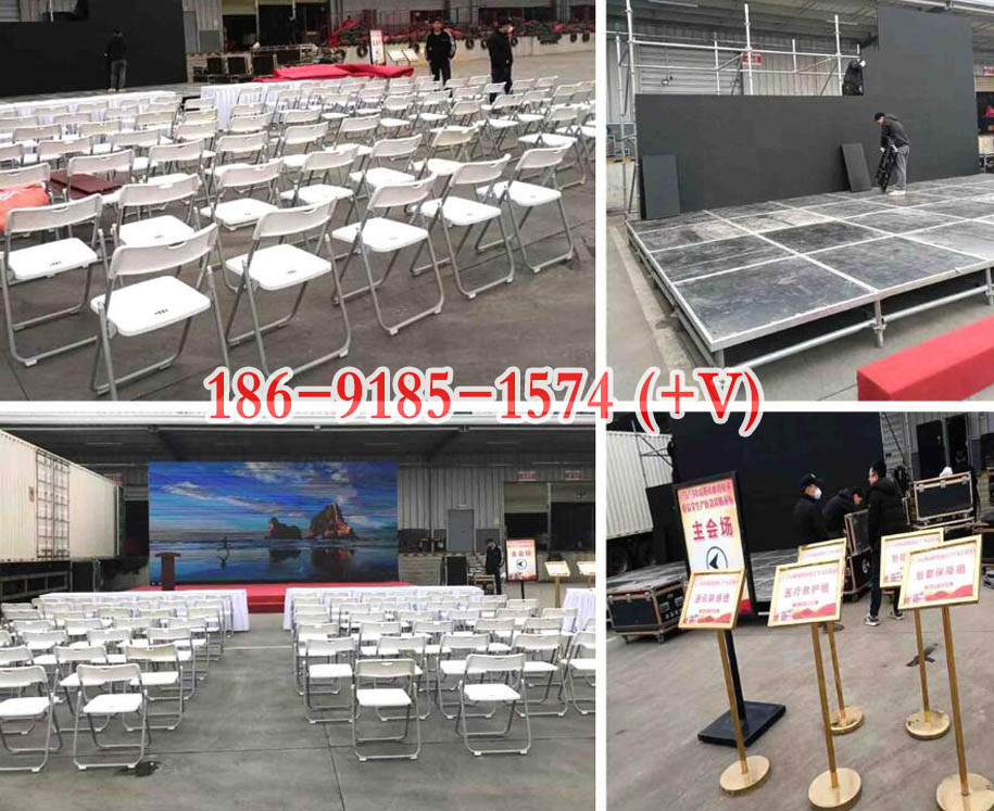 提供舞台搭建、灯光音响、桌椅、地毯、签到台、剪彩道具等一站式会议物料租赁与现场布置。